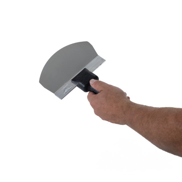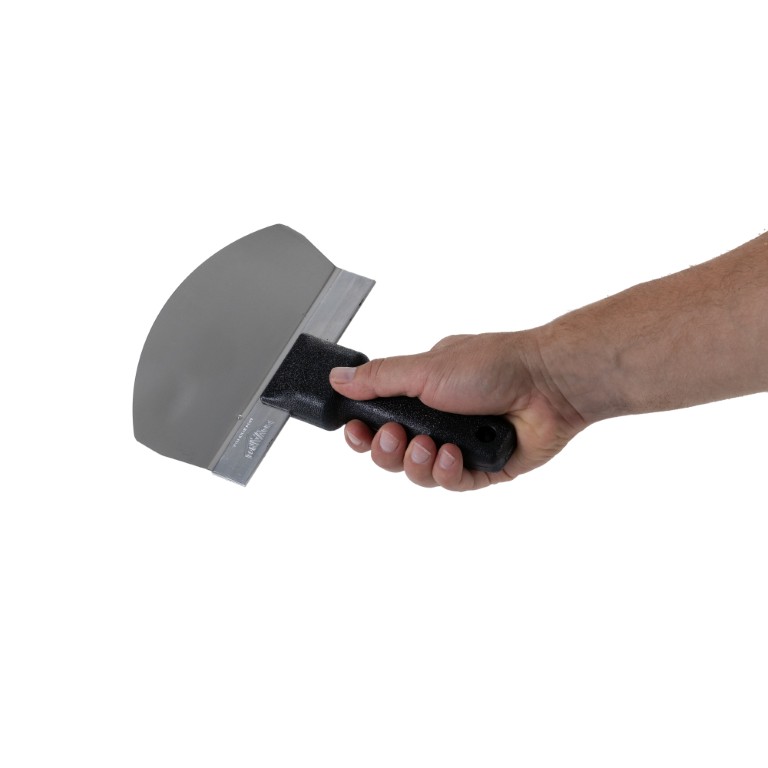 - Radius Blade Design: The radius on the blade ensures total removal of drywall mud, mortar, grout, stucco, and cement from pails without waste.