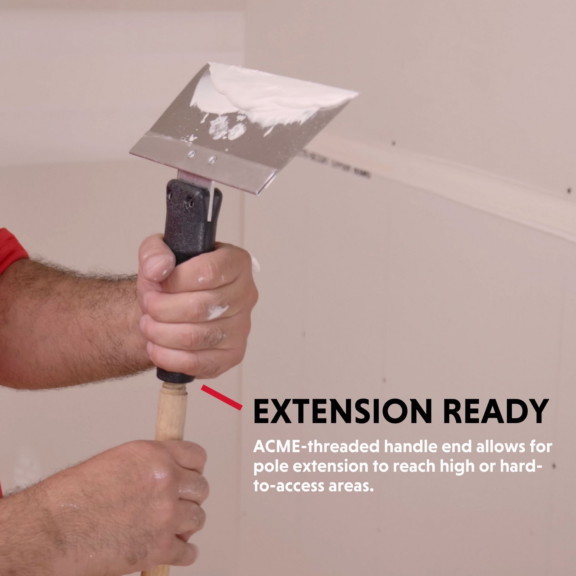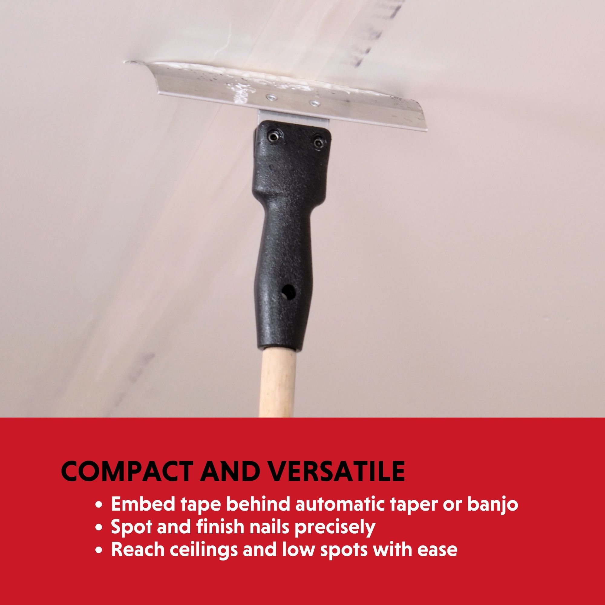 - Seamless Finish: 8” blade helps embed tape behind an automatic taper or banjo, ensuring a smooth and flawless finish; rotating the handle enables a tighter wipe.